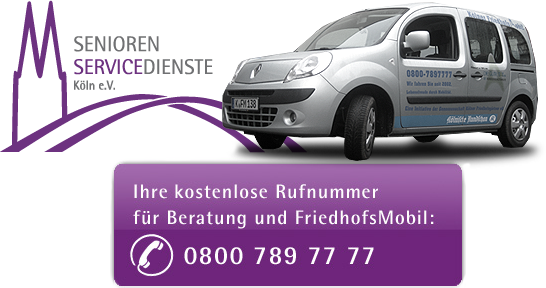 Das Kölner Friedhofs Mobil ist ein kostenloser Hol- und Bringservice für Senioren über 65 Jahren oder gehbehinderte Menschen.